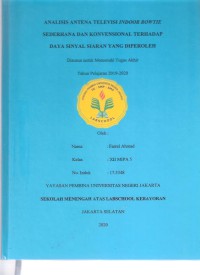 Analisis Antena Televisi Indoor Bowtie Sederhana dan Konvensional terhadap Daya Sinyal Siaran yang Diperoleh